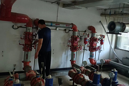 三、檢查消防供水設(shè)施:消防水池外觀,消防水箱外觀,消防水泵及控制柜工作狀態(tài),穩(wěn)壓泵、增壓泵、氣壓水罐工作狀態(tài),水泵結(jié)合器外觀、標(biāo)識(shí),管網(wǎng)控制閥門啟閉狀態(tài),泵房工作環(huán)境。