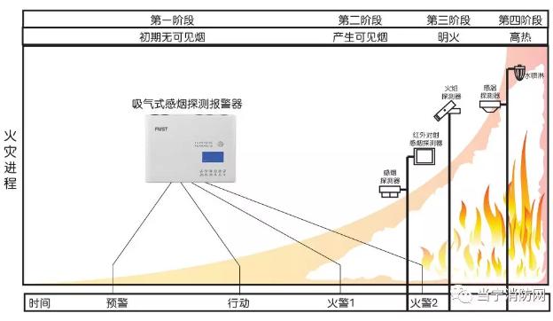 FMST的設(shè)計(jì)思想是針對(duì)火災(zāi)初期(過熱、悶燒、或低熱輻射和氣溶膠生成等不可見煙霧生成階段)的探測(cè)與報(bào)警,可以在火災(zāi)生成初期及時(shí)發(fā)現(xiàn)并排除火災(zāi)隱患,使火災(zāi)損失降到低。