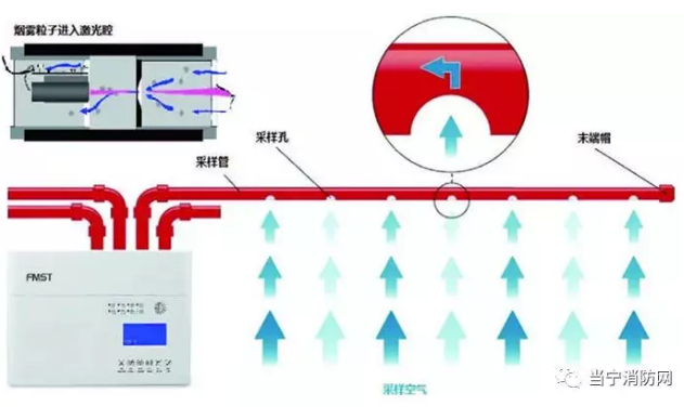 其工作原理在于通過分布在被保護(hù)區(qū)域內(nèi)的采集管網(wǎng)采集空氣樣品,經(jīng)過一個(gè)特殊的過濾裝置濾掉灰塵后送至一個(gè)特制激光探測(cè)器。空氣樣品在探測(cè)器中經(jīng)過分析,將空氣中燃燒產(chǎn)生的微粒加以測(cè)定,由此給出準(zhǔn)確的煙霧濃度值,并根據(jù)使用者事先設(shè)定的報(bào)警煙霧濃度值發(fā)出火災(zāi)報(bào)警。而此次全新上市的FMST-FXV(E)系列則在技術(shù)性能上全面升級(jí)。