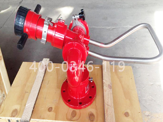 在安裝消防水炮時(shí),為了避免消防旋轉(zhuǎn)和噴水過程中的消防水炮搖動(dòng),必須在短立管上安裝防搖托架,短路管上防搖托架的固定點(diǎn)與消防水炮法蘭之間的距離不應(yīng)超過200mm。